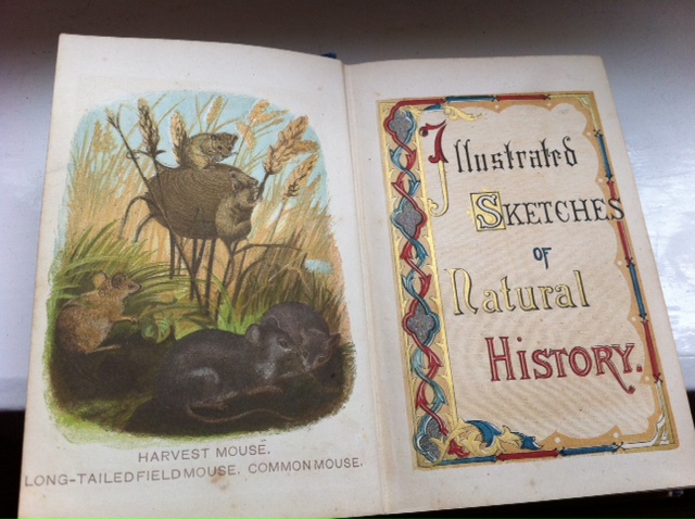 My book is not so much a family heirloom. Sadly, Mum never left me any books that were of value and she wasn’t a reader either. However, I do have a favourite old book which is worth discussing and was probably handed down to the right person! A number of years ago I was at a bird fair in the north east of England and found, for the princely sum of £10, a little book called Illustrated Sketches of Natural History. Inside the front cover is a message ‘Prize – William Richardson, High Lane Church Sunday School’ Dated January 19 1877. I love this book because it keeps as a poignant reminder of how the species of the natural world are declining so fast. For example there are illustrations of the extinct Tasmanian Tiger which existed in 1877. ‘It is not all choice to its diet but devours, when hungry, almost anything that comes in its way’ Another species worth noting is The Quagga’ an intermediate between a zebra and a horse from South Africa. The book says: The Quagga is a handsome, well formed animal, approaching to the horse in general outline and indeed it has been placed by some writers, among true horses. It’s an animal which associates together in large herds and they are much hunted by the natives.’ Sad to say the natives did eventually hunt the quagga to extinction. The illustrations are very basic, because at that time the only way you could draw an animal was to shoot it first or guess what it looked like. I find this book fascinating due to the naivety of the writer. Last week on TV I noted the Bactrian Camel, now in steep decline. Here is what the book says: The Bactrian Camels are found in considerable numbers and not so well adapted for long journeys where little or no water can be obtained. It cannot remain without water as the Arabian Camel does and was not designed by the Creator to live on so thirsty a soil’