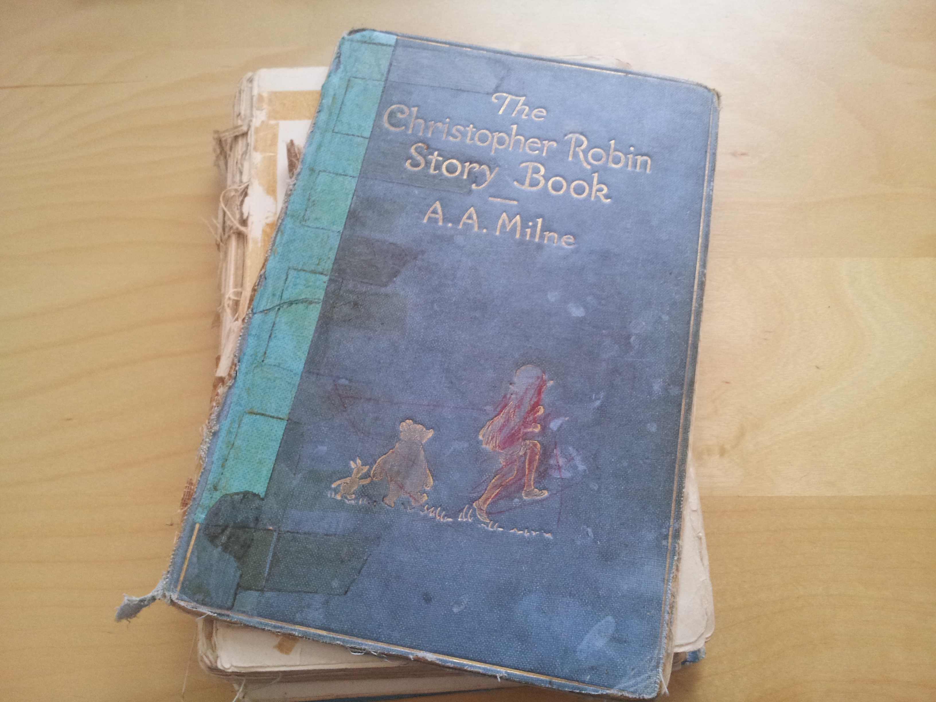 Choosing my inheritance book was so easy. Straight away, I grabbed my very tatty copy of AA Milne’s The Christopher Robin Storybook from my shelf. It’s an anthology of Milne’s poetry and stories; my copy claims to have been published in 1931, and has the name Eileen Dalgleish handwritten on the inside cover. I have no idea who Eileen Dalgleish is, but she gave up her copy of The Christopher Robin Storybook for my family’s enjoyment and for that, I salute her.