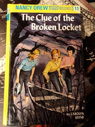 My Aunt Linda gave me two Nancy Drew books when I was a kid. It was my first time getting novels as opposed to easy reader chapter books. I remember opening the present and seeing that not only were these “big girl” books, but they were hard covers. The only other hard cover books I had gotten were picture books. I was from the generation of paperbacks, so a hard cover for a kid? That was a big deal. The two she gave me were: The Bungalow Mystery and The Clue of the Broken Locket. I remember not knowing what a “bungalow” was, but I didn’t want to look like a little kid asking in front of everyone, so I took my grandpa aside and asked him and he explained it to me.